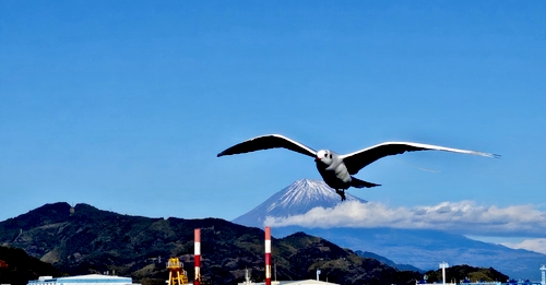 (カモメさんだけど笑 富士山を背にうまく風に乗ってるさまがカッコイイ)