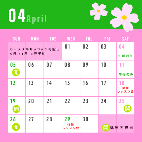 「最新」4月パーソナルセッション・各講座開催スケジュール